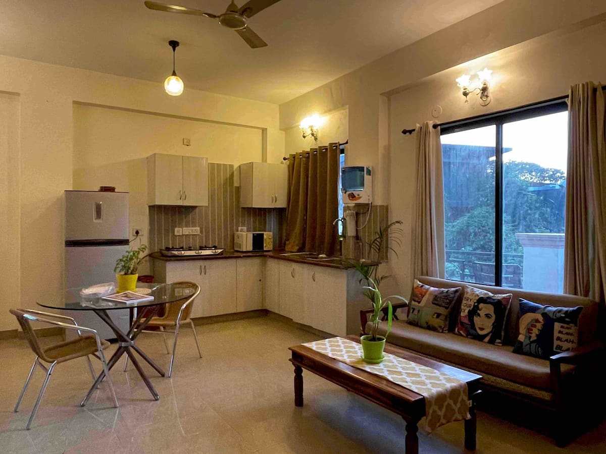 Ashna's place is in a fantastic location, just a short drive to Vagator and Anjuna beaches. The neighborhood is really nice and feels safe.The living space is functional, and all the amenities listed are available and work perfectly. The shower pressure is excellent, and hot water is always available. The host is responsive and just a message away, making communication easy, and there’s also a dedicated caretaker on-site.