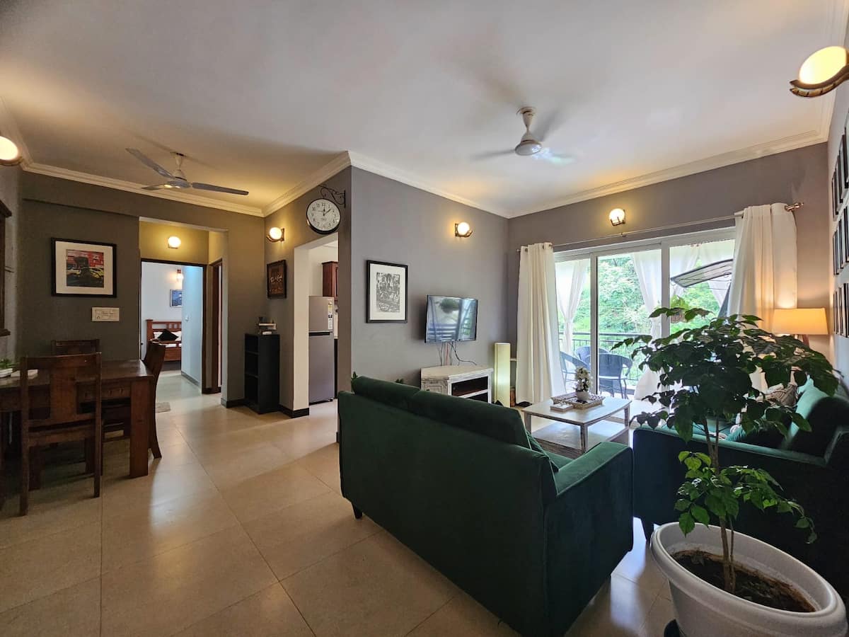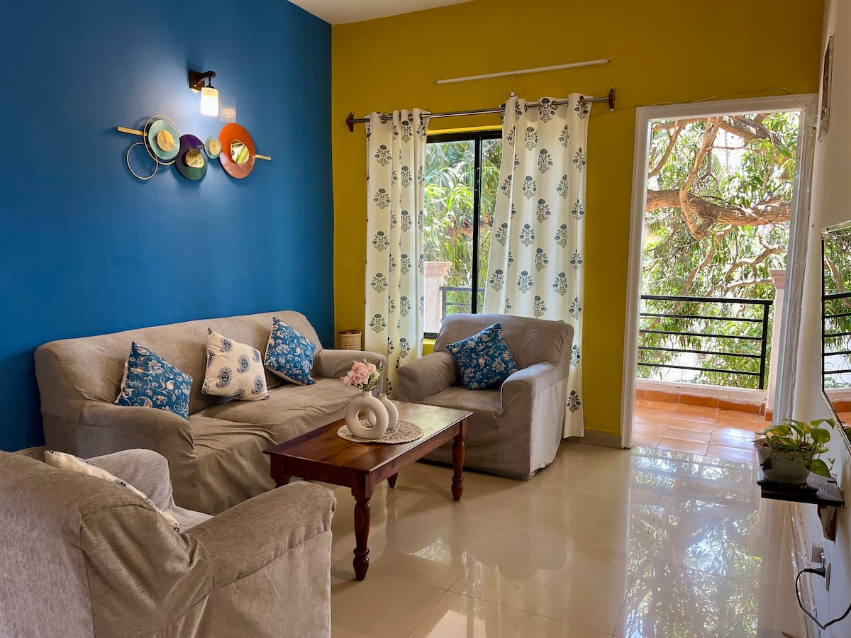 7 min walking distance from vagator /anjuna beach...peaceful appartment.. exactly like picture ..freindly host...very good stay option at this price..but need some maintenance it would me more better..